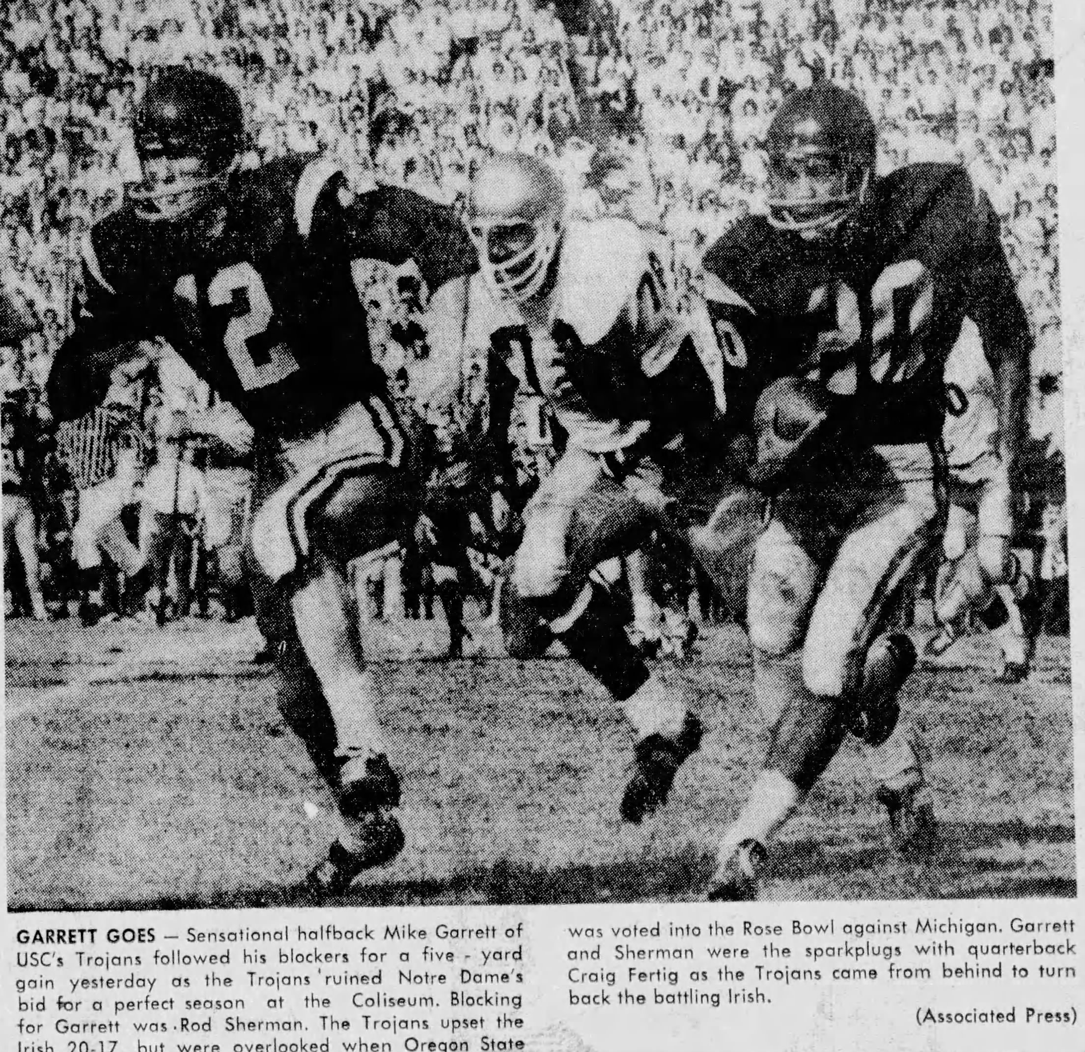 The dramatic climax arrived in the final minutes. With the score tight and the clock winding down, USC drove deep into Irish territory. Facing a critical fourth down and fifteen yards to go for the tie, Trojans quarterback Craig Fertig delivered an unforgettable strike. He lofted a 15-yard touchdown pass to Rod Sherman, stunning the No. 1 team in the nation. The goal line drama secured the incredible 20-17 victory for the Trojans with just 1:35 left on the clock.