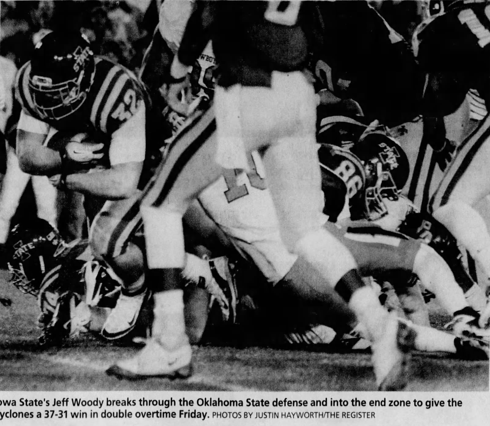 The teams traded blows in the first overtime, both finding the end zone to keep the high-stakes drama going. The turning point came in the second overtime. With the momentum hanging in the balance, Iowa State defensive back Ter’Ran Benton made the play of a lifetime, picking off Brandon Weeden. This critical turnover gave the Cyclones the ball and a clear advantage. Minutes later, Cyclones running back Jeff Woody plunged into the end zone from 4 yards out, sealing the 37-31 double-overtime victory.