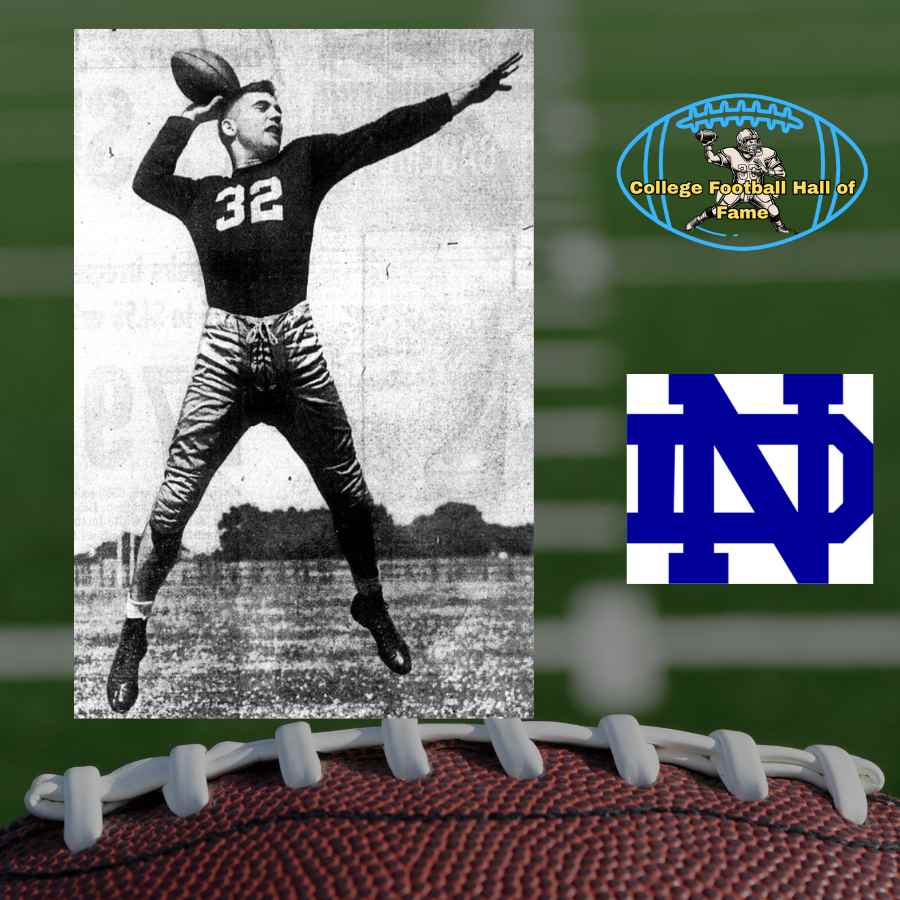 The NFF has a great bio on Johnny L. John Lujack was Heisman Trophy winner Angelo Bertelli’s replacement at quarterback when the signal caller was called to fight in the US military during World War II. Johnny led Notre Dame to essential victories over Army (26-0) and Iowa (14-13), securing the 1943 national championship. After serving in the War effort overseas himself, Lujack returned under center for the Irish in 1946-47. Notre Dame went 17-0-1 in that period and won two national championships. Lujack was a unanimous All-America both seasons and won the Heisman himself in 1947. Johnny was also an excellent defender. This was demonstrated in 1946 when he tackled Doc Blanchard, cutting off a sure Army touchdown, in a game that ended in a 0-0 tie.