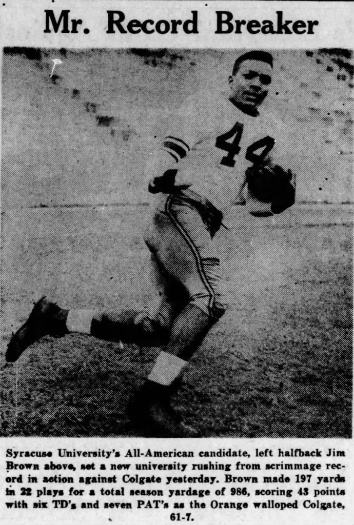 • The Setting: Syracuse vs. Colgate. A heated rivalry where Jim Brown decided to write his own chapter in the record books.