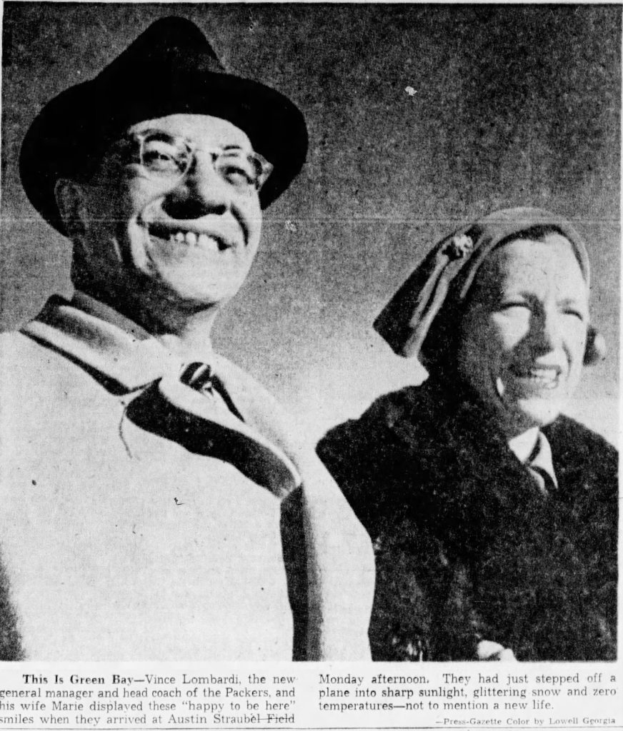 “Happy to be here….I expect to take a more active part in coaching than Jim (Jim Lee Howell of the NY Giants, Lombardi’s former boss). I’ll have a coach in charge of the offense and one in charge of the defense but I’ll work more with my assistants than Jim did with us.” ~ Vince Lombardi soon after he landed in Green Bay to take over as the franchise’s head coach after spending five seasons (1954-58) as the New York Football Giants “offensive coordinator.” (With the Giants, Lombardi handled the offense, and Tom Landry handled the defense.