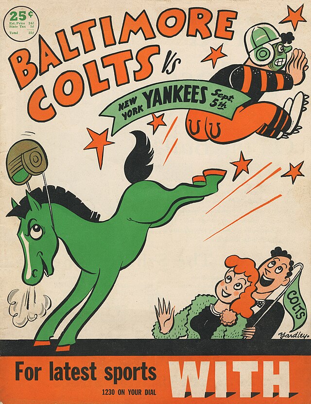 Program cover for the All-America Football Conference game pitting the New York Yankees vs. the Baltimore Colts, Sept. 5, 1948, at Memorial Stadium, Baltimore.