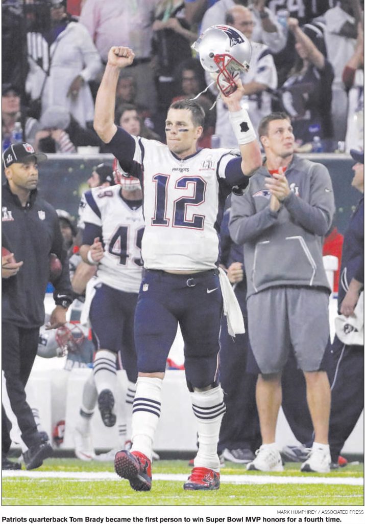 “We all brought each other back. We never felt out of it. It was a tough battle.” ~Tom Brady after he helped the New England Patriots come back from a 25-point defecit to win Super Bowl LI 34-28 on a last minute drive in Over Time.