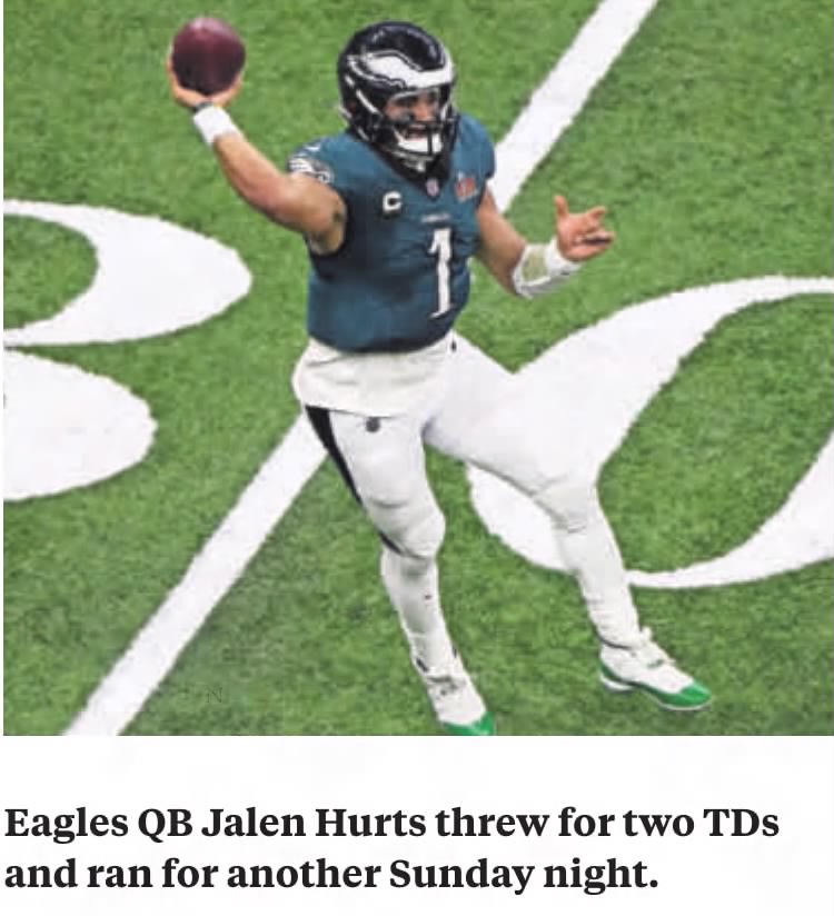 “This is the ultimate team game. You can’t be great without the greatness of others. Great performance by everybody- offense, defense, special teams, (general manager) Howie (Roseman) getting the guys, our coaching staff, these great players. We didn’t really ever care what everyone thought about he won, or their opinions. All we wanted to do was win.” ~ Philadelphia Eagles Head Coach Nick Sirianni after the Eagles defeated the Kansas City Chiefs 40-22 in Super Bowl LIX.