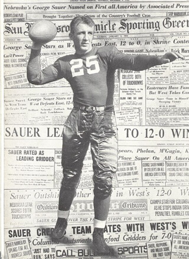 George Sauer’s career was a testament to early football excellence, blending collegiate glory with professional achievement. After cementing his legacy at Nebraska and delivering a standout performance in the East-West Shrine Game, Sauer spent three seasons in the NFL with the Green Bay Packers. His foundational impact on the sport was recognized by the National Football Foundation with his induction into the College Football Hall of Fame in 1954.