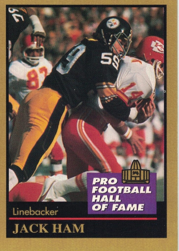 The National Football Foundation selected Jack Ham to enter the College Football Hall of Fame in 1990. After college, the Pittsburgh Steelers chose Jack with the 34th overall pick in the 1971 NFL Draft. Jack played for 12 seasons with the Black and Gold, registering 32 interceptions, 21 fumbles recovered, and playing in 8 Pro Bowls. Injury prevented him from playing in Super Bowl XIV, but he collected four Championship rings to go with the other three that he helped earn in Super Bowls IX, X & XIII. In 1988, Jack Ham became a card-carrying member of the Gold Jacket Club in the Pro Football Hall of Fame.