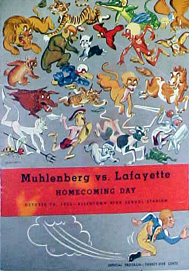 Muhlenburg is located in Allentown, Pennsylvania, and Lafayette is located in Easton, PA. Some interesting hand-drawn artwork from the post-war era of football.