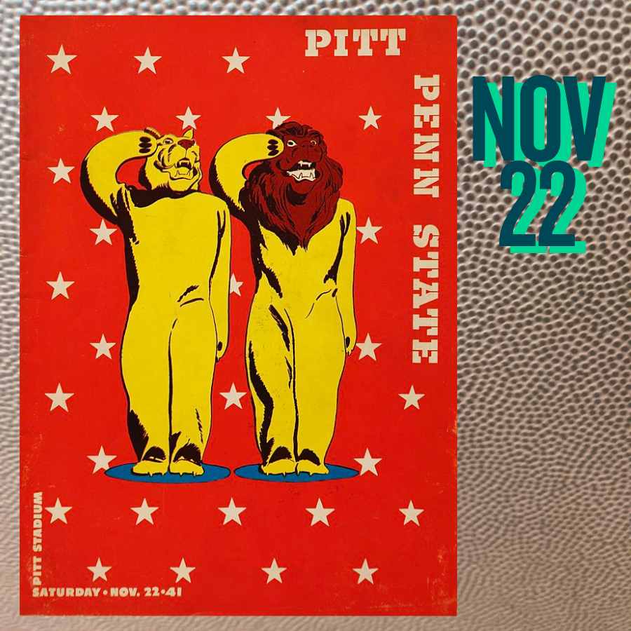 November 22, 1941 – (feature image) The Pitt Panthers defeated the Penn State Nittany Lions 14-6 in their annual rivalry game on November 22, 1941. This victory gave Pitt a winning record for the season, while the Nittany Lions finished their year with a narrow loss.