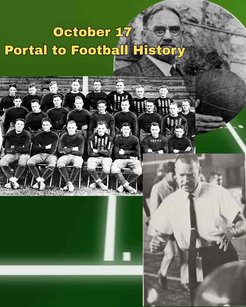 Love daily football history? Join our trek through each day of the year on this website. You may want to see yesterday’s history: October 16 Football history.